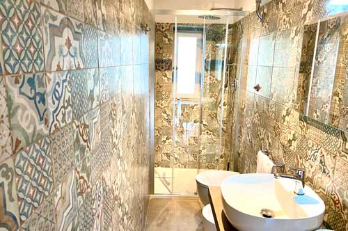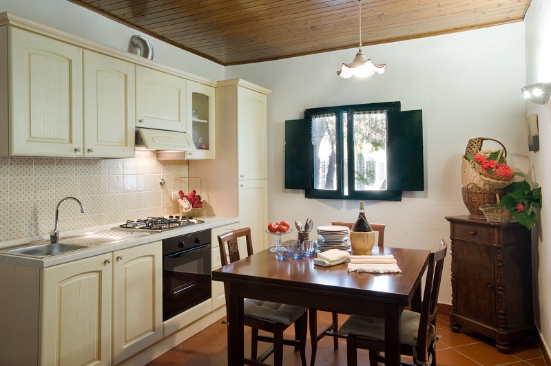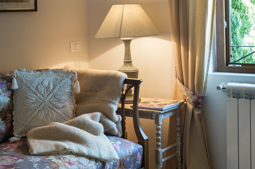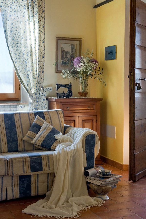 Climbing the sand stone steps you reach the first floor of the farm: where once there were the barns, there are now five apartments and a suite.